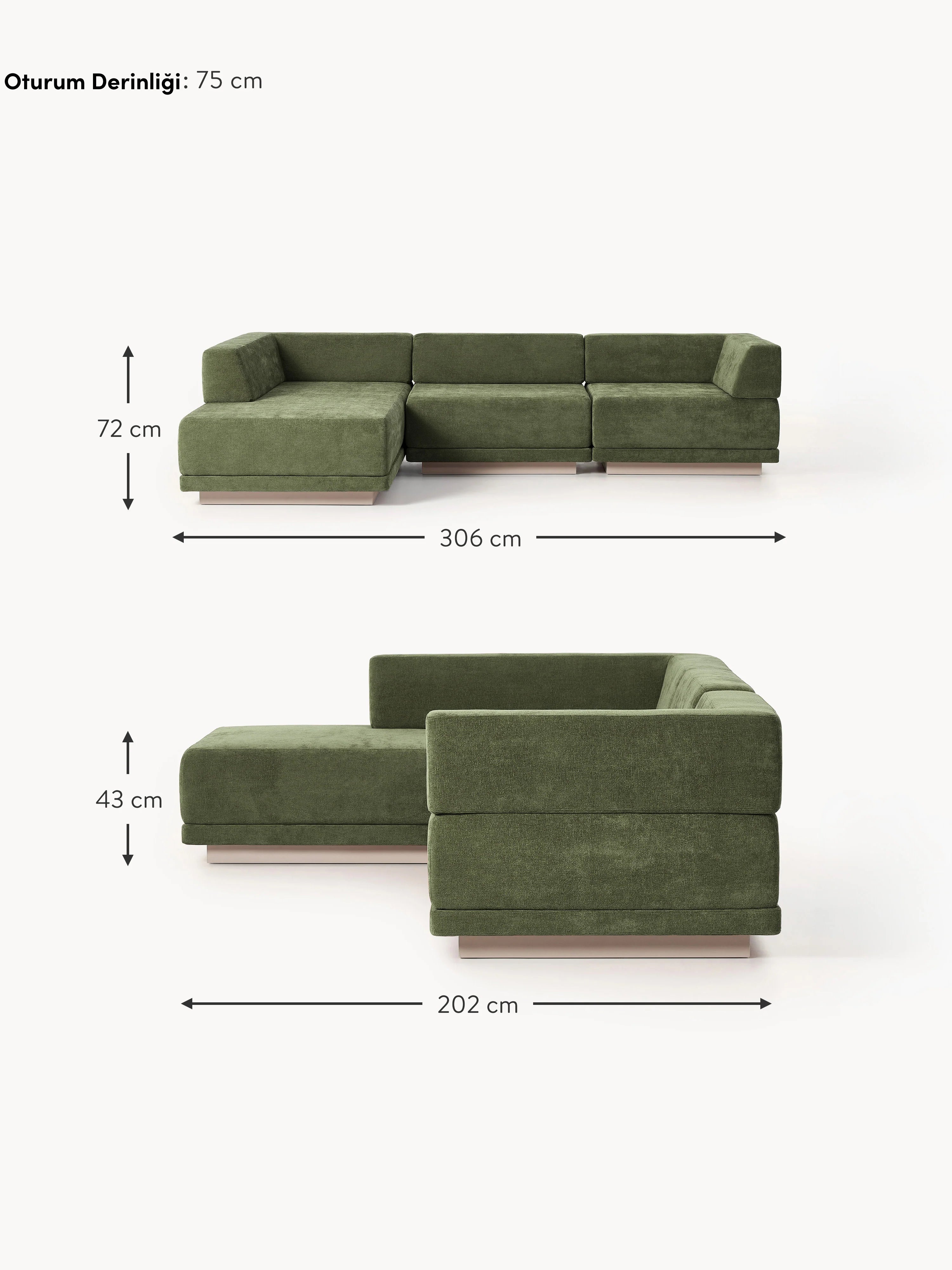 Terim Large Köşe Koltuk Yeşil Dokuma Kumaş
