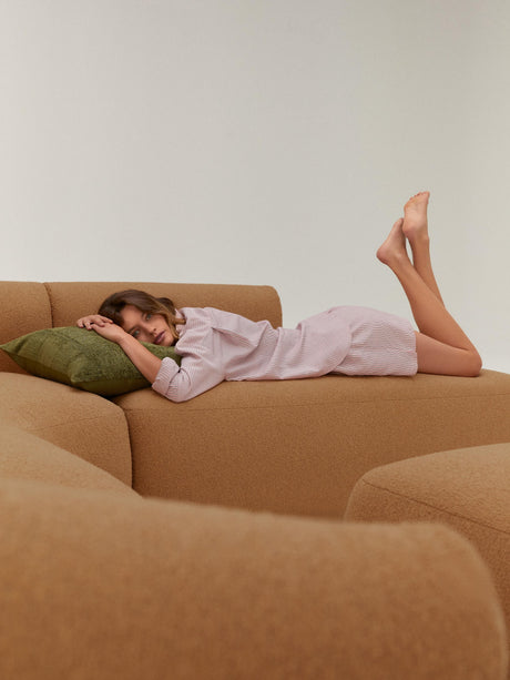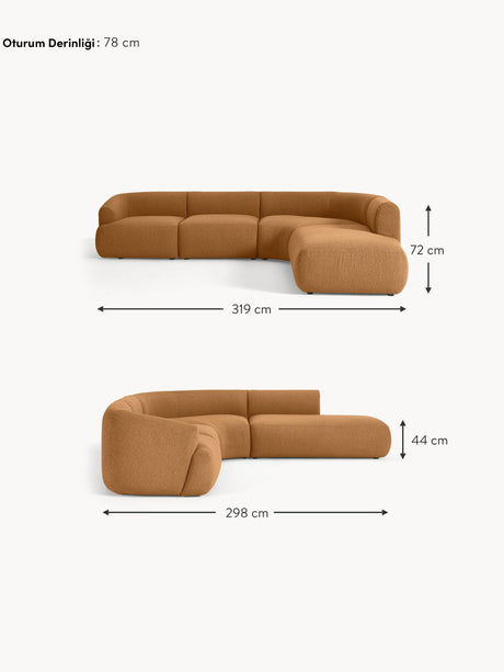 Modern Large Köşe Koltuk Açık Kahve Bukle