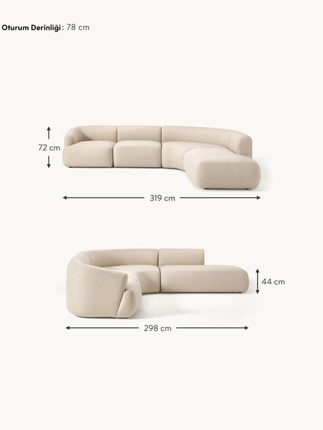 Modern Large Köşe Koltuk Bej Dokuma Kumaş